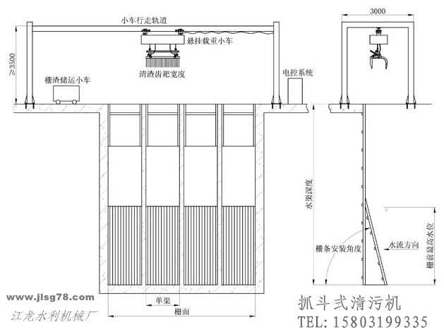 使用寿命长:无永久浸泡部件,抓斗选不锈钢材质,抓斗上下运动不用导轨,无磨擦、故障少,能耗小。